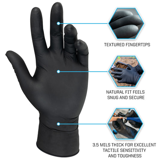 Black Nitrile Gloves by Pyrsiva Medical