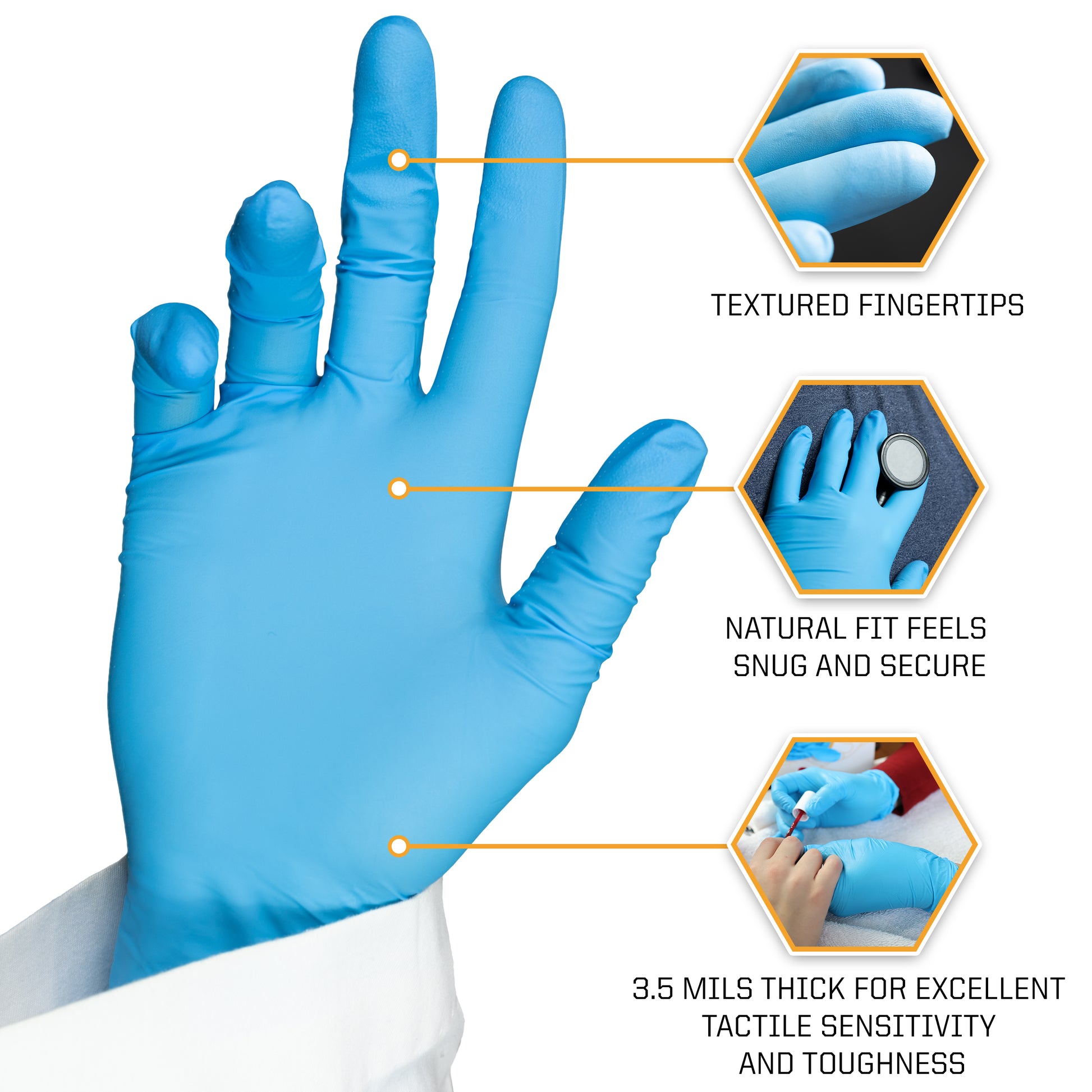 - Textile Sensitivity: Our nitrile gloves feature a very comfortable fit with textured fingertips that ensure a better grip and higher textile sensitivity. This way, you can work with more precision and accuracy. The gloves also have a smooth finish with a beaded cuff for more durability.